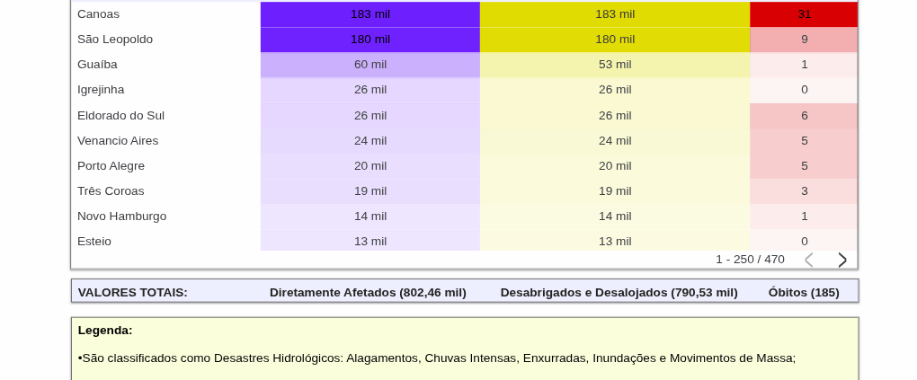 Desastres Hidrológicos no Rio Grande do Sul (Dados Atlas Digital de Desastres no Brasil- 2024)